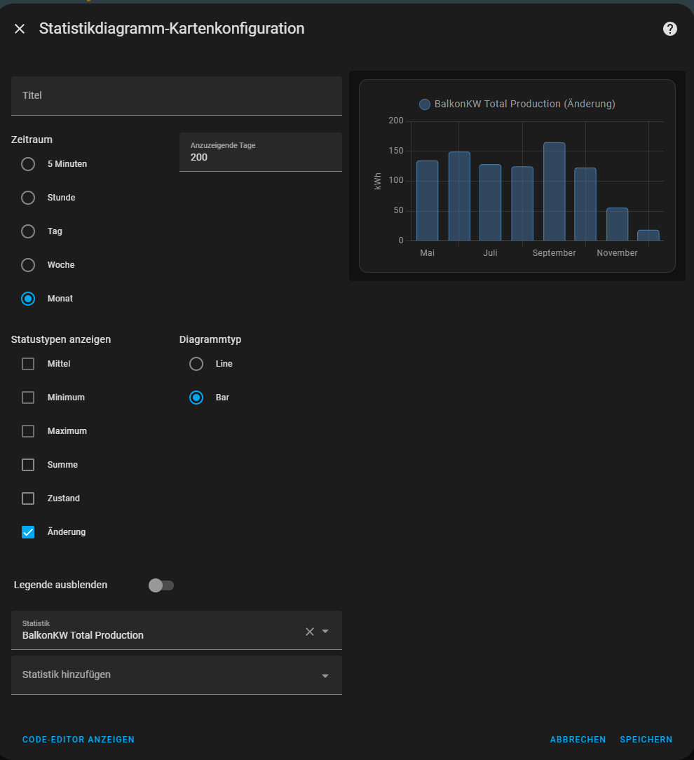 Für das Speichern von historischen Werten besitzt Home Assistant eigene Datenbank-Tabellen, wodurch als Beispiel das Energiedashboard auch Daten älter als 10 Tage anzeigen kann. Aber nicht nur das Energie-Dashboard kann die Langzeitstatistikdaten verwenden.