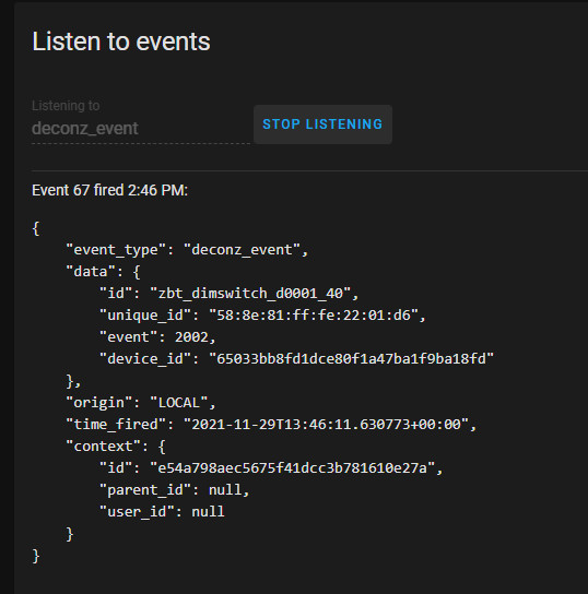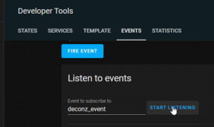 In den Developer Tools, kann im Reiter „EVENTS“ beobachtet werden, welche Geräte eine Aktion auslösen, beispielsweise beim Drücken auf einen Taster:
