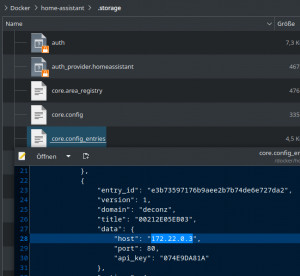 Die Einstellung in der Datei .storage/core.config_entries zeigt dann auf eine falsche IP-Adresse: