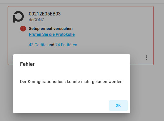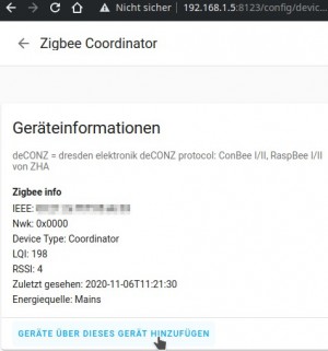 Geräte die zuvor in deCONZ eingebunden wurden, könne an dieser Stelle nicht weiter verwendet werden, sie müssen erneut verbunden werden: