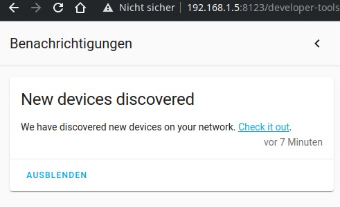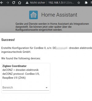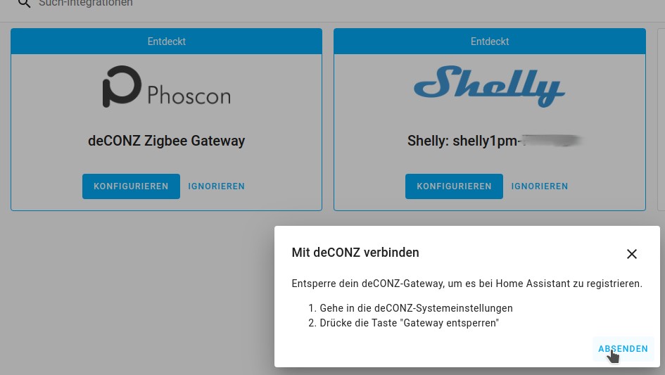 Über die Benachrichtigung meldet Home-Assistant bereits das erkannte deCONZ-Setup: