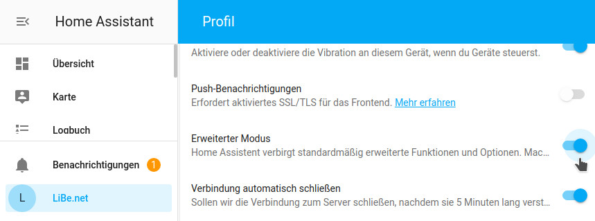 Dadurch können in den Einstellungen bestimmte Attribute geändert werden, in meinem Fall „assumed_state“