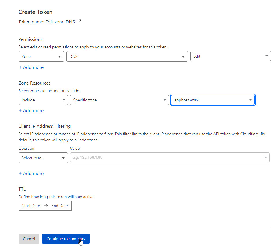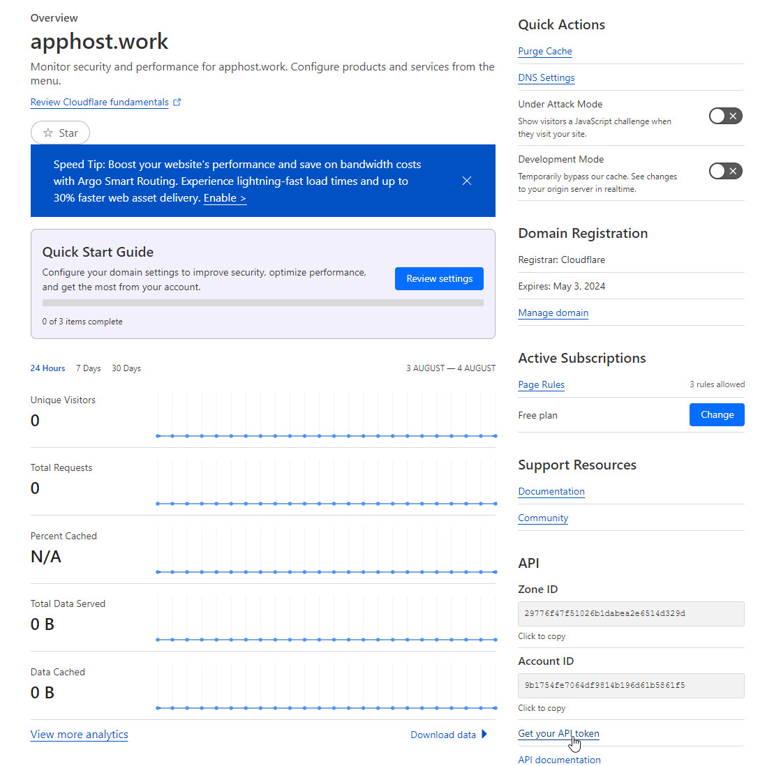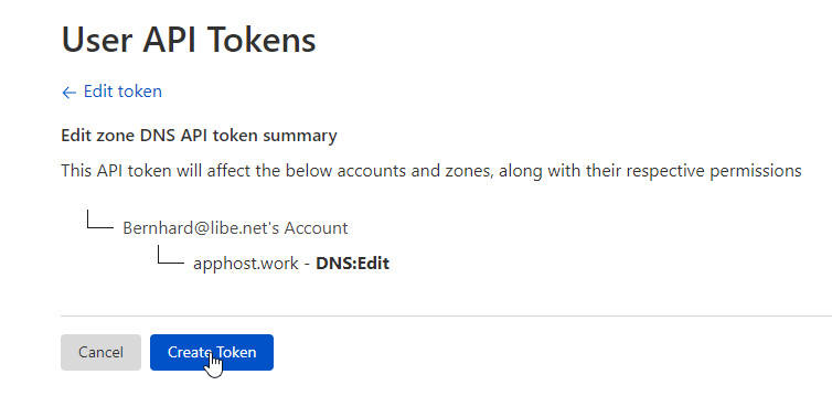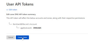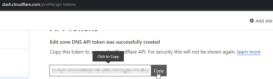 Das API-Token kann auf der Cloudflare-Website mit "Get your API token" angefordert werden:
