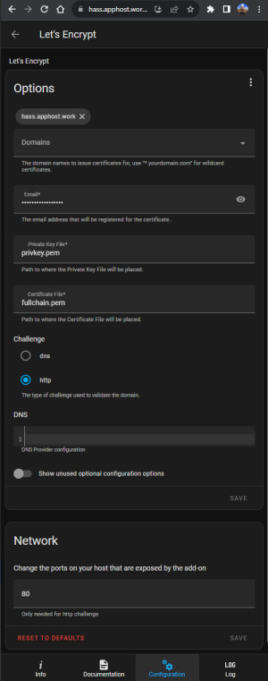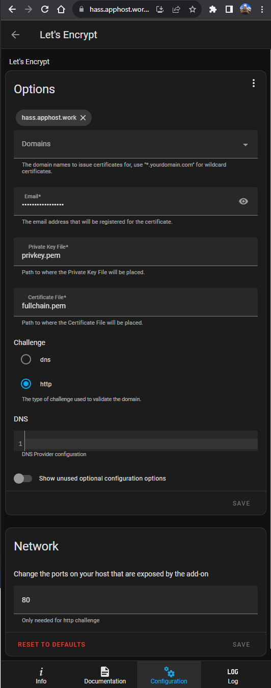 Nachdem das Let's Encrypt-Zertifikat durch das DuckDNS Add-on verfügbar ist, muss Home Assistant konfiguriert werden, um es zu verwenden.