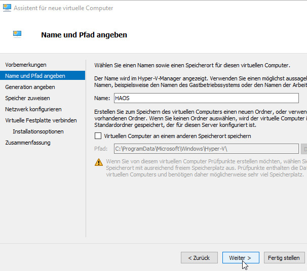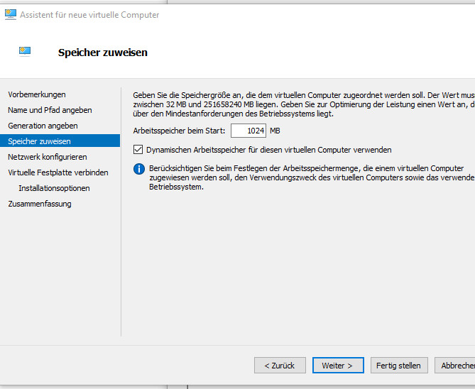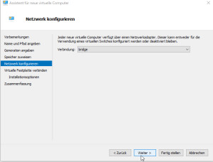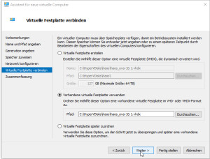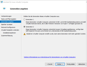 Wie auch beim Einsatz eines anderen HyperVisor muss auch in HyperV zunächst eine virtueller Computer (VM) angelegt werden.