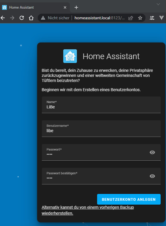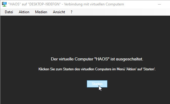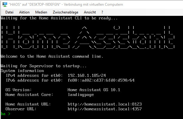 Nach dem Anlegen kann die VM gestartet werden und HAOS ist damit einsatzbereit.