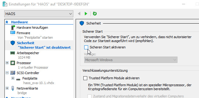 Für HAOS kann neben einer eigenen Hardware, wie ein Raspberry PI, auch ein beliebiger HyperVisor in Linux oder Windows verwendet werden. Als Beispiel Virtualbox, Proxmox oder unter Windows HyperV. Repräsentativ für andere HyperVisor habe ich die Installation mit HyperV getestet.
