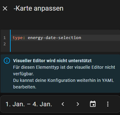 Notwendig dazu ist die Karte vom Typ: energy-date-selection und die Statistics-Graph-Card mit der Option "energy_date_selection: true" reagiert auf die Datumsänderung: