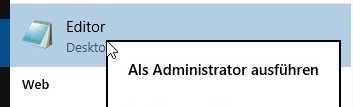 Im Suchfeld: Notepad, rechts „Als Administrator ausführen“ und folgende Datei öffnen: c:\windows\system32\drivers\etc\hosts