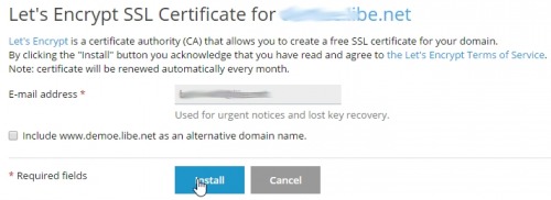 In der installierten Erweiterung werden sämtliche, auf dem Webserver installierte, Domänen aufgelistet. Beim Klick auf eine Domäne kann das Zertifikat installiert werden, automatisch und ohne einen Gedanken an die Konfiguration zu verschwenden:
