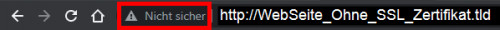 Ohne SSL-Zertifikat erscheint eine Warnung, dass die Seite „Nicht sicher“ ist: