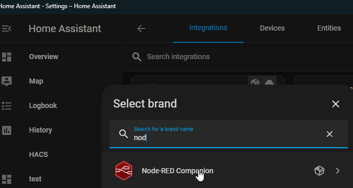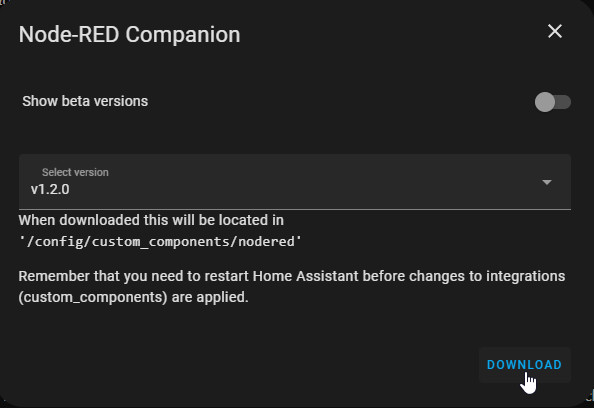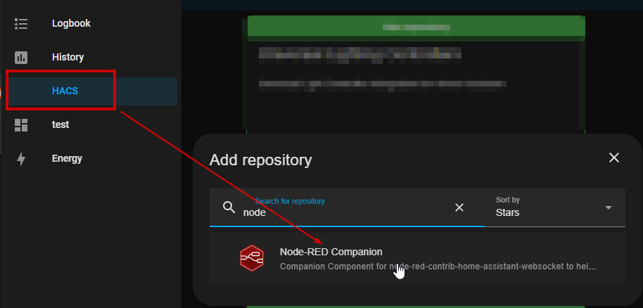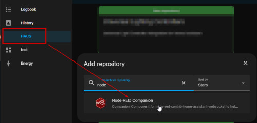 Zunächst habe ich über HACS das Node-RED Companion-Repository hinzugefügt und die Integration aktiviert.