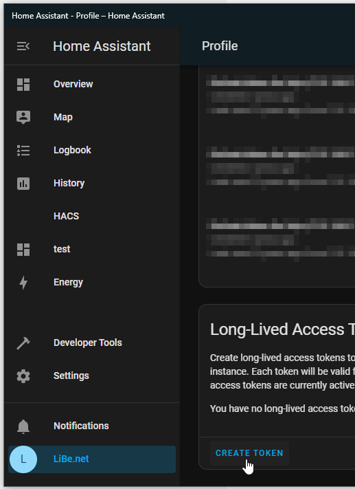Der Zugriff von Node-Red auf Home Assistant erfolgt über einen Access Token, dieser kann in Home Assistant über das Usermenü erstellt werden.