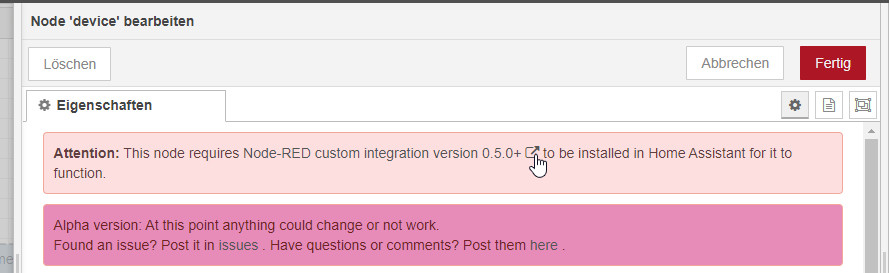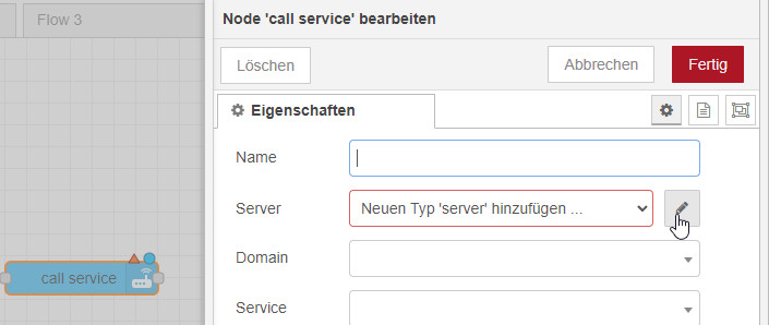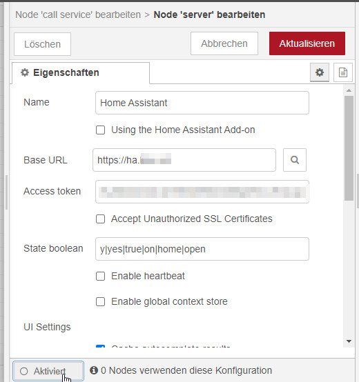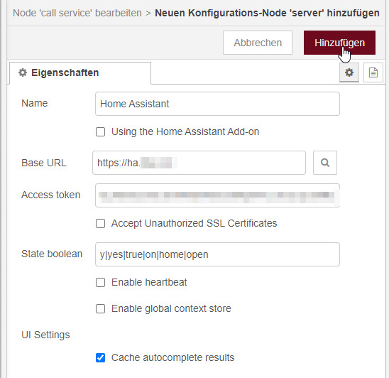 Jetzt fehlt Node-RED noch eine Verbindung zu Home-Assistant, diese kann wie folgt eingerichtet werden: