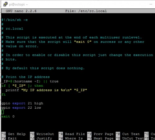 pi@octopi:~ $ sudo nano /etc/rc.local