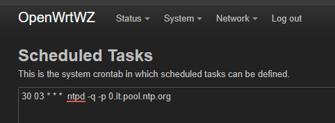 30 03 * * * ntpd -q -p 0.it.pool.ntp.org
