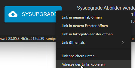 Über die Sysupgrade-URL: Rechtsklick auf Sysupgrade und "Adresse des Links kopieren" kann der Downloadlink kopiert werden: