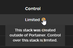 Wenn die Container außerhalb von Portainer erstellt werden, ist deren Conrol: "Limited" und nicht alle Aktionen verfügbar: