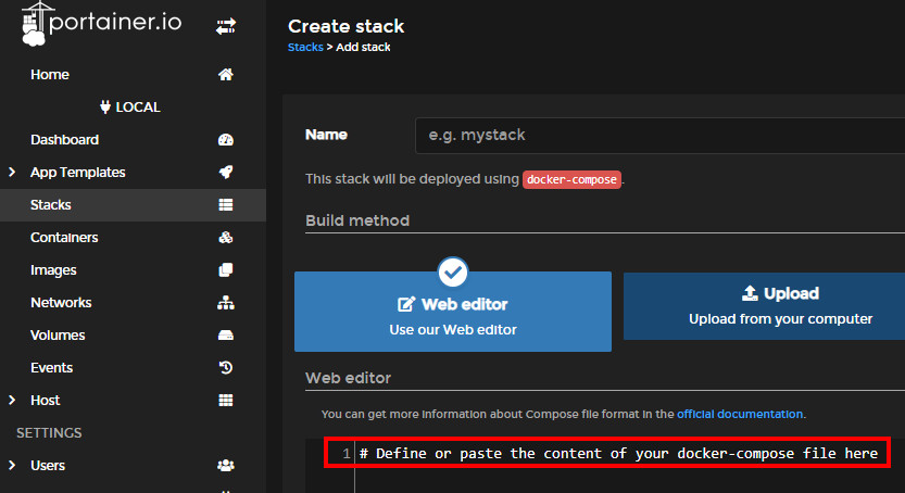 Zudem kann ein beliebiger Stack über ein docker-compose-File erstellt werden: