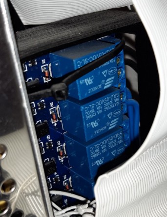 230V-Relais vor dem Netzteil ermöglichen das Ein- und Ausgeschaltet mittels Webinterface (OctoPrint), dazu habe ich zusätzliche Relais verbaut: siehe: Raspberry Pi Relais