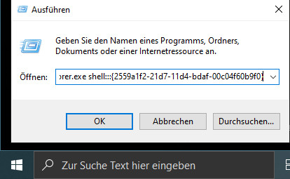 C:\Windows\explorer.exe shell:::{2559a1f2-21d7-11d4-bdaf-00c04f60b9f0}