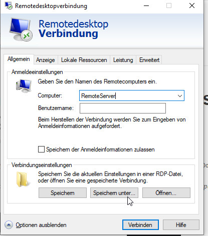 Verbindungsdateien für RDP können im RDP-Client über "Speichern unter ..." erstellt werden: