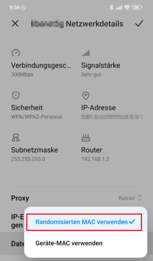 Mobile GerĂ€te besitzen eine Option fĂŒr eine zufĂ€llige MAC-Adresse, wodurch sich diese mit unterschiedlichen MAC-Adressen melden und eine Zuordnung der Zugriff erschwert wird. Die Option kann in den WLAN-Einstellungen der einzelnen GerĂ€te deaktiviert, indem die Einstellung "GerĂ€te-MAC verwenden" aktiviert wird: