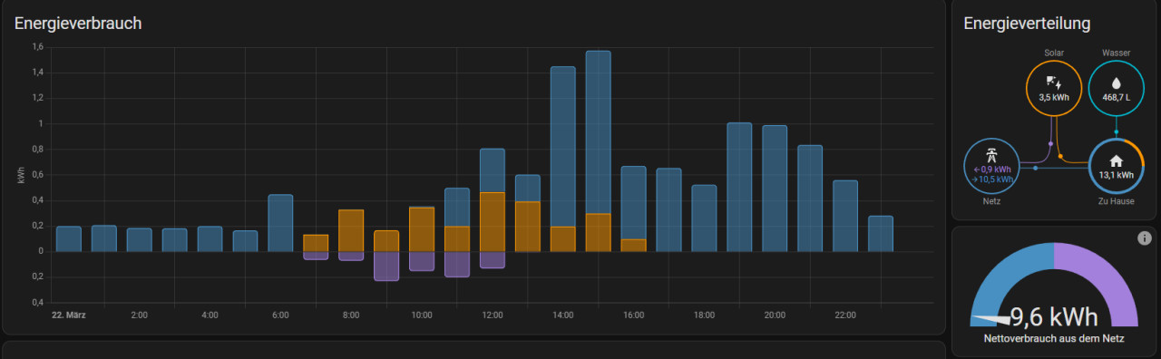 Für ein sinnvolles Optimieren des Stromverbrauchs hilft das Wissen über die aktuellen Verbrauchsdaten. Dazu kann ein zusätzlichen Smart Meter verbaut werden, oder noch besser: Der Smart Meter des Netzbetreibers ausgelesen werden. Als Beispiel kann der Smart Meter meines Netzbetreibers, der Salzburg AG über die M-Bus-Kundenschnittstelle abgefragt und die Daten dadurch in anderen Systemen verwendet werden. Die ausgelesenen Werte umfassen den Energieverbrauch und bei Einsatz einer PV-Anlage die Einspeiseleistung, sowie die Spannung und den Strom jeder einzelnen Phase, alles live, im 5-Sekunden-Takt. Für das Auslesen des Kaifa MA309M reicht ein MBUS-to UART-Board und ein ESP32-Mikrocontroller. Programmiert habe ich den Mikrocontroller in ESP-Home mithilfe eines Open-Source-Projekts von Github: https://github.com/DomiStyle/esphome-dlms-meter. Nach dem Aufspielen des Projekts auf den ESP32 liefert dieser, beim Anschluss an den Smart Meter, die Daten an Home Assistant, wodurch diese ausgewertet und für bestimmte Automatisierungen verwendet werden können.