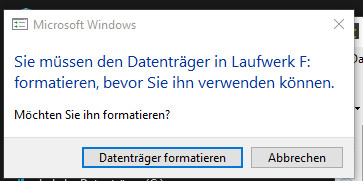 - Sie müssen den Datenträger in Laufwerk x: formatieren, bevor Sie ihn verwenden können. Möchten Sie ihn formatieren?