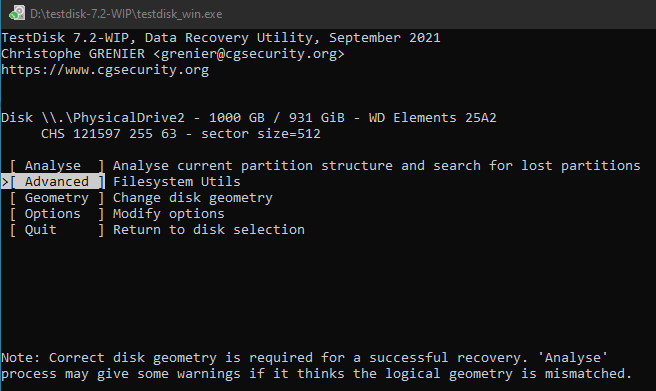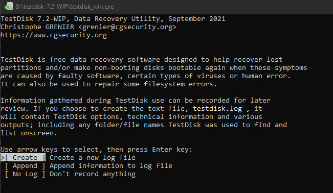 Nach dem Download kann Testdisk unter Windows mit der testdisk_win.exe-Datei gestartet werden, bzw. von einem Linux-System durch das Starten des Befehls „testdisk“.