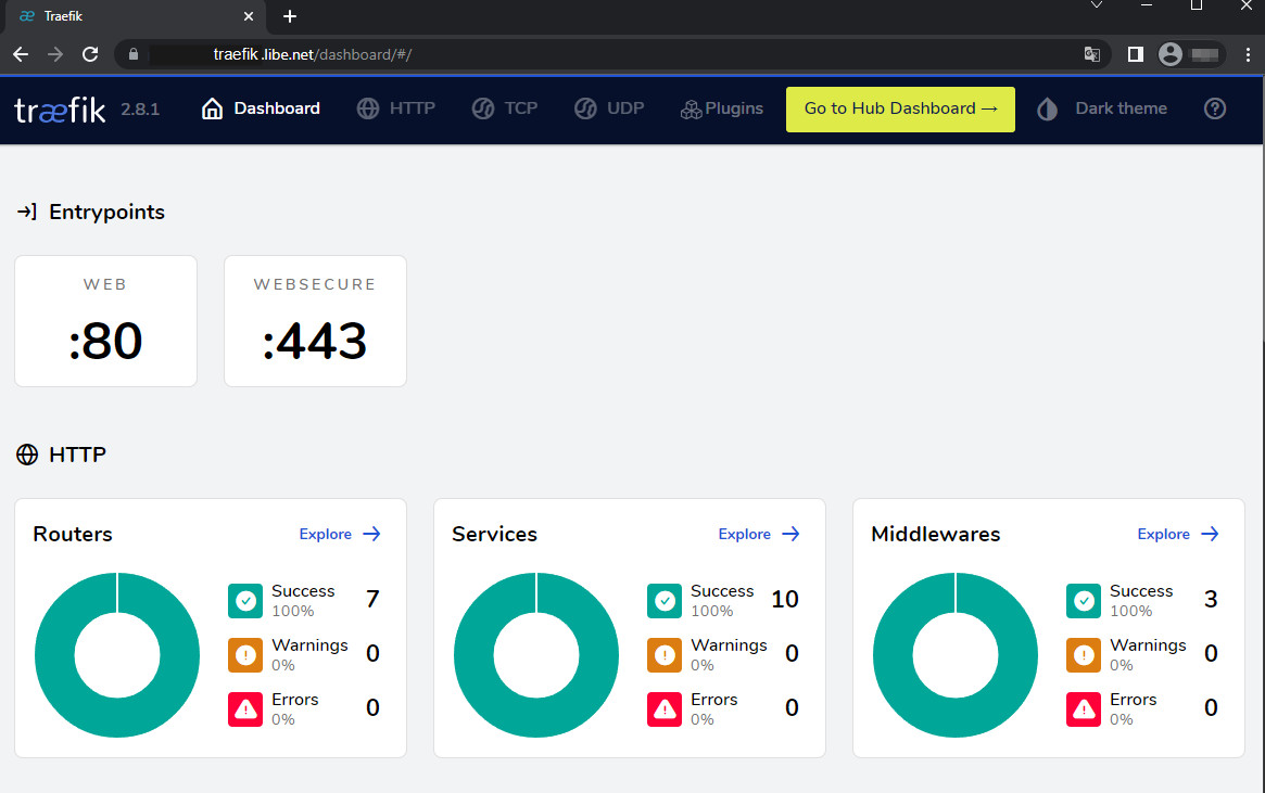 - traefik.domain.tld sollte mit einer eigenen Domäne für das Traefik-Dashboard,