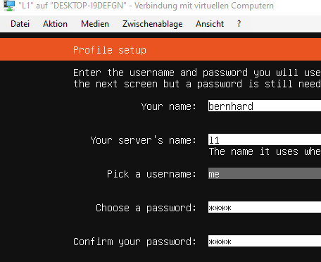Der Wizard führt uns durch die Netzwerkeinstellungen und das Einrichten des Profils: