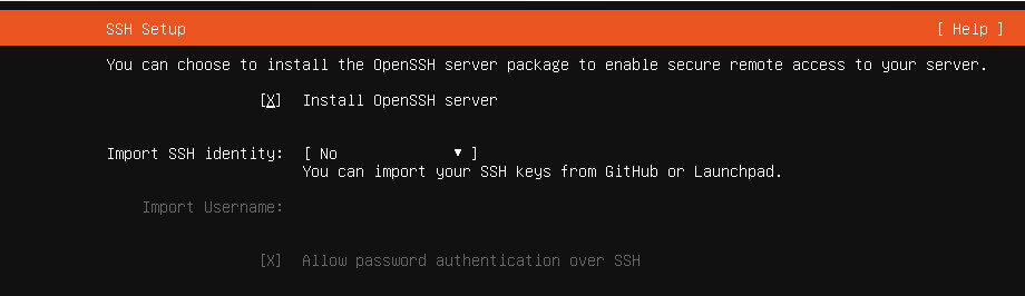 Um den Server über das Netzwerk administrieren zu können, habe ich den OpenSSH-Server aktiviert: