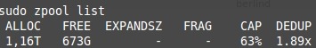 Laut einigen Berichten im Internet sollte ein ZFS Volume nur bis 80% gefüllt werden, da die Performance ansonsten massiv schlechter wird. Zudem hatte ich mit ZFS Probleme mit dem Standby. Beim Aufwachen des Computers konnte dieser ab und zu das ZFS Volume nicht mehr laden, selbst beim Herunterfahren blieb der Computer dann hängen. Aufgrund dieses Mankos hab ich nach alternativen Dateisystemen mit einem ähnlichen Featureset gesucht und bin mit BTRFS fündig geworden.