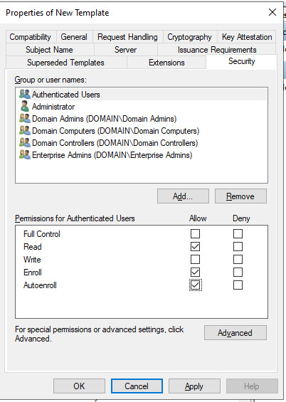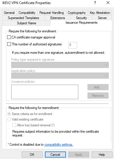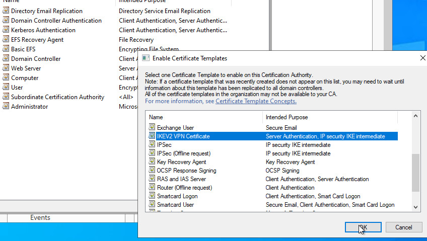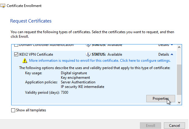 Nachdem die Zertifizierungsstelle eingerichtet ist, wird ein Zertifikat benötigt. Um die Kompatibilität mit IKEv2 sicherzustellen, benötigen wir zunächst eine Vorlage.