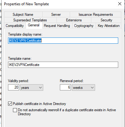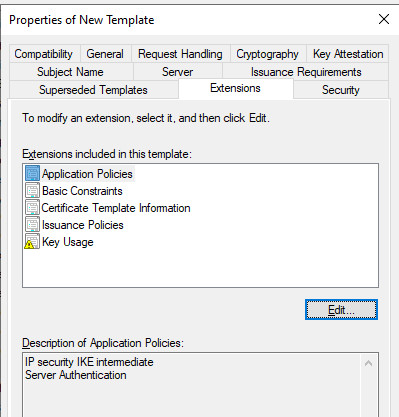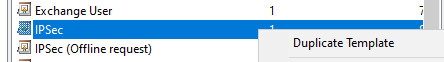 Als Grundlage für das IKEv2-VPN Zertifikat kopiere ich die IPSec-Vorlage und passe diese wie folgt an:
