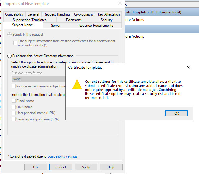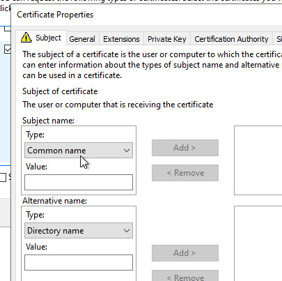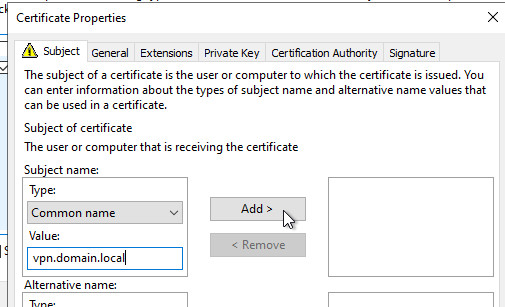 Als "Common name" verwende ich den zuvor erstellen DNS-Eintrag.