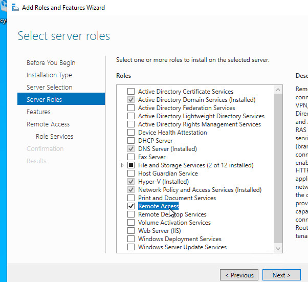 Wer Windows 2022 oder 2025 installiert hat, kann darauf die notwendigen Rollen aktivieren. Für VPN-Zugriff via IKEv2 sind die Rollen "Remote Access" und "Network Policy and Access Services" sowie die Active Directory Zertifikatsdienste erforderlich.