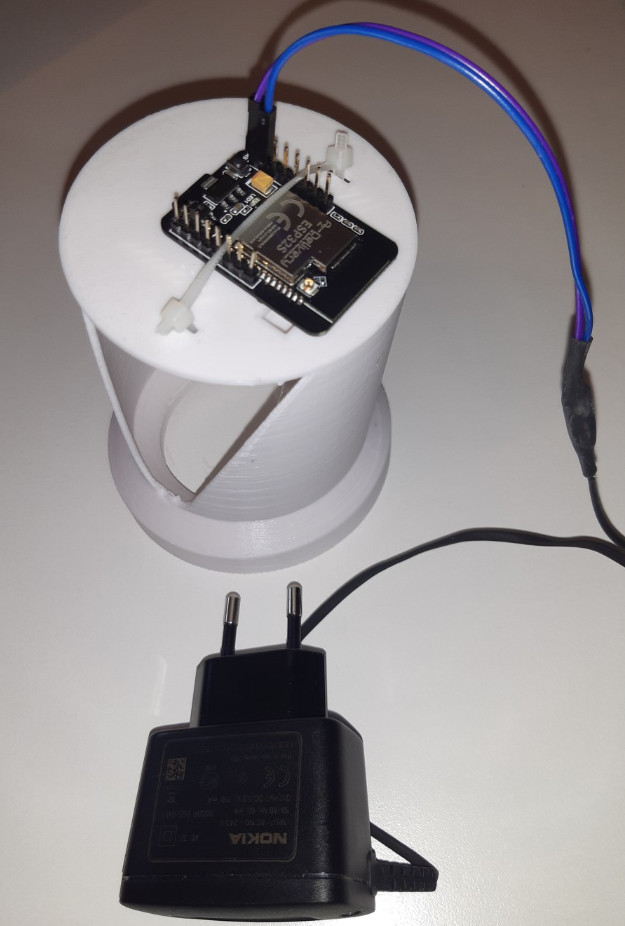 Zudem benötigt der ESP32 für das Speichern der Daten eine kleine SD-Karte und als Stromversorgung verwende ich ein altes Handy-Netzteil. Angebracht habe ich den ESP mit einem 3D-Gehäuse aus dem 3D-Drucker: