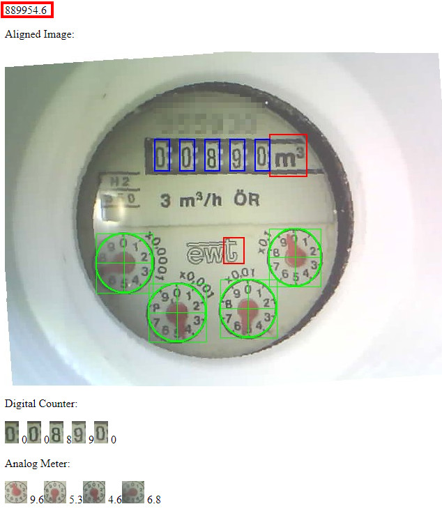 Hier ein konkretes Beispiel: Der Zähler erkennt aufgrund des vorherigen Werts den korrekten Zählerstand von 889954,6 und nicht die abgelesenen digitalen Zahlen und analogen Werte, was ohne "CheckDigitIncreaseConsistency" den falschen Wert: 890954,6 ergeben würde: