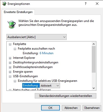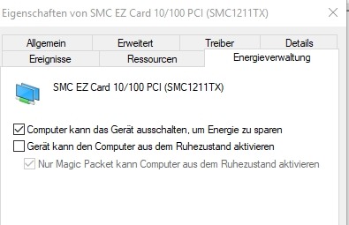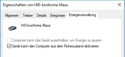 Im Gerätemanager kann die Einstellung "Gerät kann den Computer aus dem Ruhezustand aktivieren" konfiguriert werden: