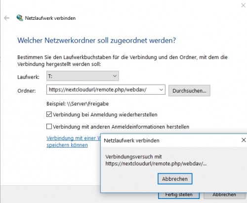 Im Detail: Verbinden zu einem Webdav-Ordner: