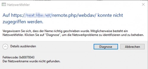 Beim Wiederverbinden einer Webdav-Verbindung kommt dieser Fehler: