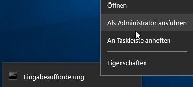 - Alternativ in der Eingabeaufforderung folgende Befehle eingeben: