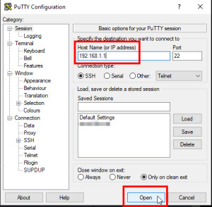 Das direkte Ăndern der Einstellungen ĂŒber das Terminal setzt eine Verbindung mit Putty oder einem anderen SSH-Client auf alle Router oder Access Points, bzw. auf deren IP-Adresse voraus: