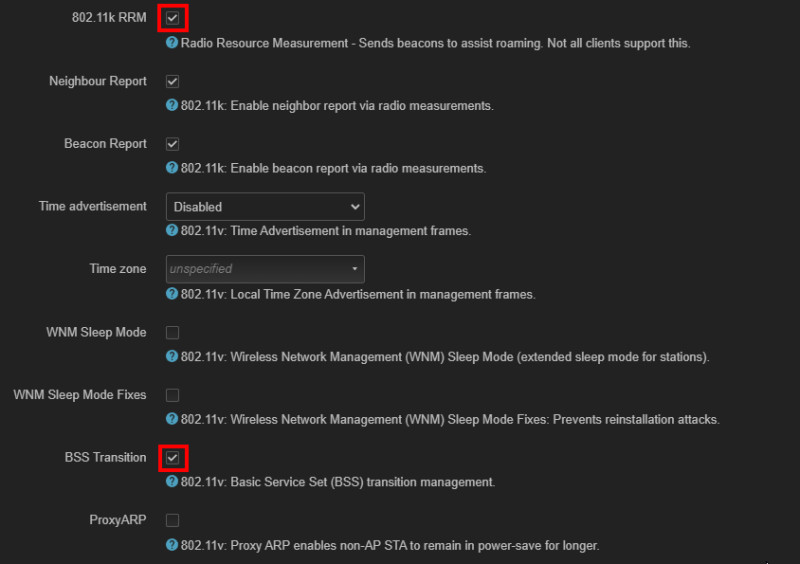 Optional: 802.11k RRM und 802.11v