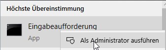 Damit alle Details sichtbar werden, sollte die Eingabeaufforderung als "Administrator" gestartet werden: