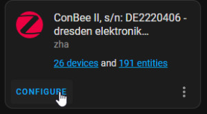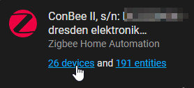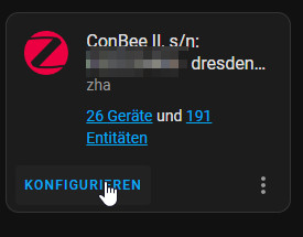 Durch das Mapping auf den Home Assistant Container meldet sich der ConBee II Stick an dieser Stelle: