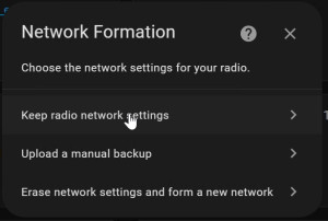 Etwas verzweifelt habe ich den Menüpunkt: "Radio-Einstellungen beibehalten" ausgewählt: