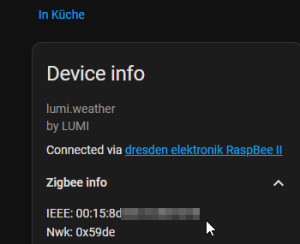 Die ID kann unter "Geräteinformation" und Zigbee Info angezeigt werden: